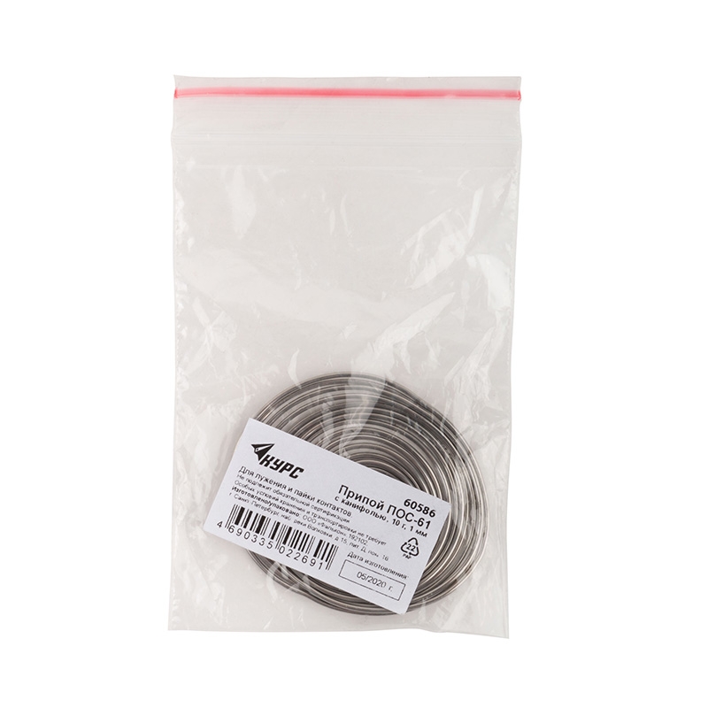 Припой с канифолью D 2 мм, 10 г, POS61 "улитка" применяется для лужения и пайки электро- и радиоаппаратуры, печатных схем, точных приборов с высокогерметичными швами, где недопустим перегрев.Температура плавления: 183–190 °C.