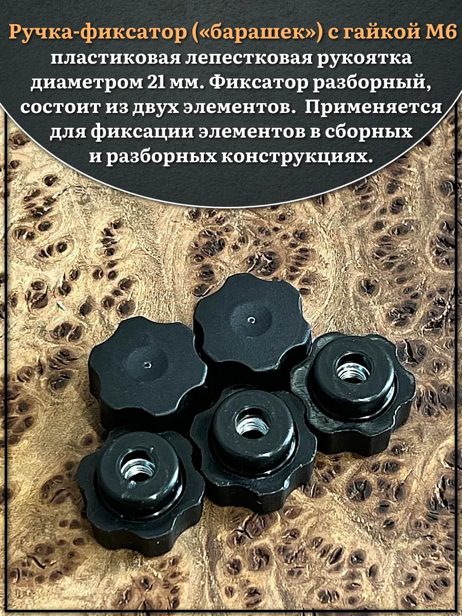 | Ручка фиксатор барашек разборный d21 с гайкой М6, 2 шт. | 35-0210ф2 | 1 шт. |