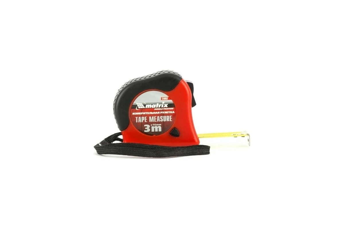 Рулетка Double fixation 3м х 16мм. обрезинен.корп., двойная плавная фикс Matrix