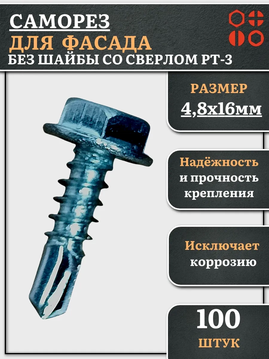 Саморез без шайбы для фасада со сверлом 4,8х16 РТ-3, 100 шт.