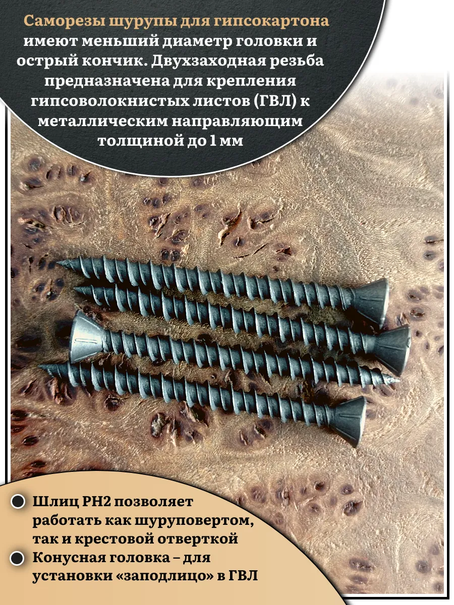 Саморез для крепления ГВЛ (гипсокартон) 3,9х45, чёрный