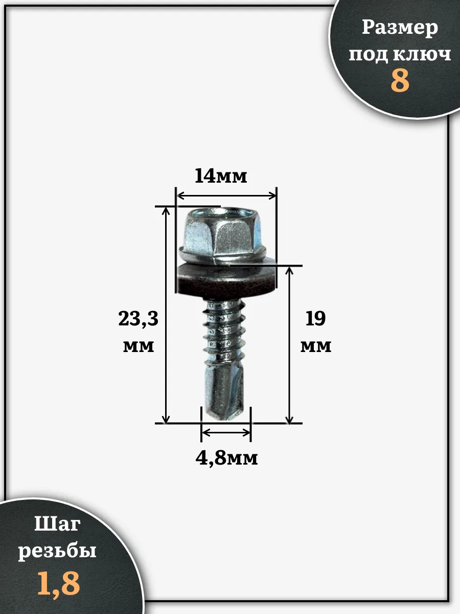 Саморез кровельный 4,8х19 мм с шайбой (под сверло),ОЦ 1000шт.