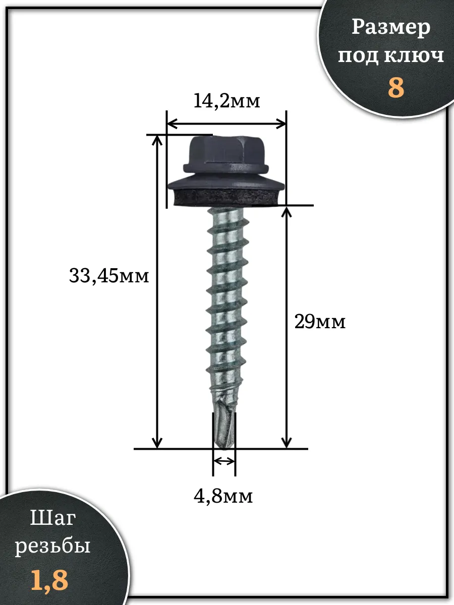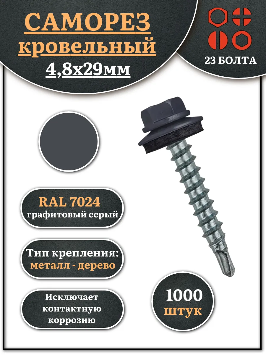 Саморез кровельный, 4,8х29 графитовый серый RAL7024 1000 шт