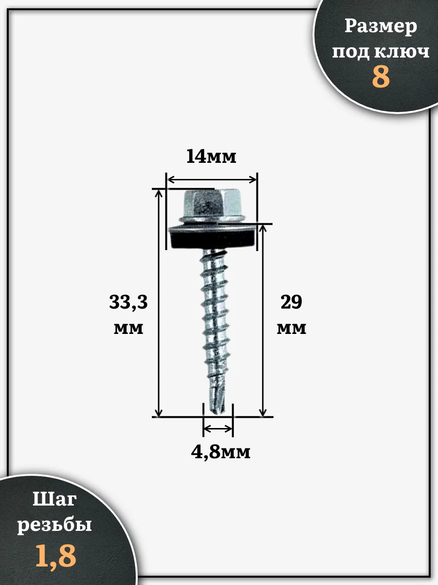 | Саморез кровельный 4,8х29 мм с шайбой (под сверло),ОЦ 100шт. | B03004802936O07ф100 | 1 шт. |