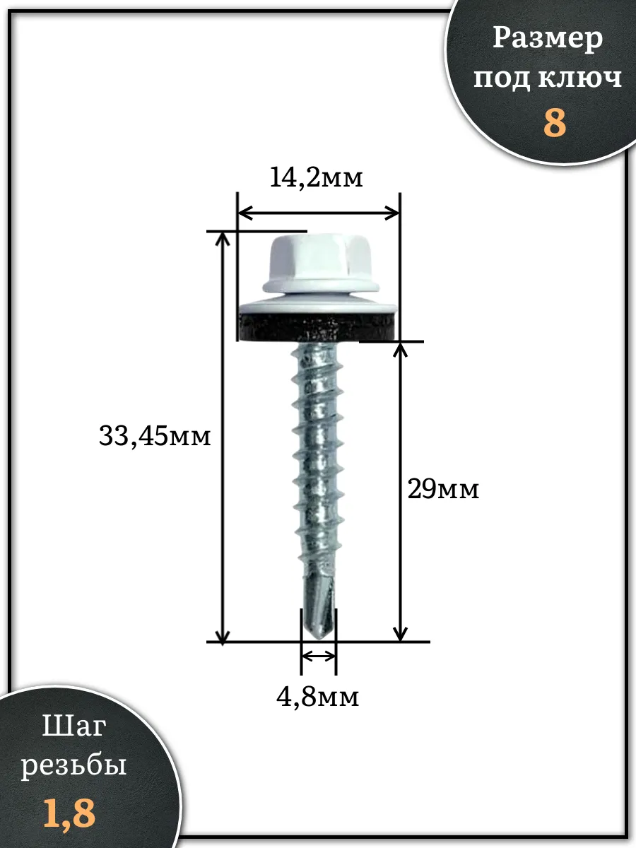 Саморез кровельный, 4,8х29 сигнально-белый RAL9003 500 шт