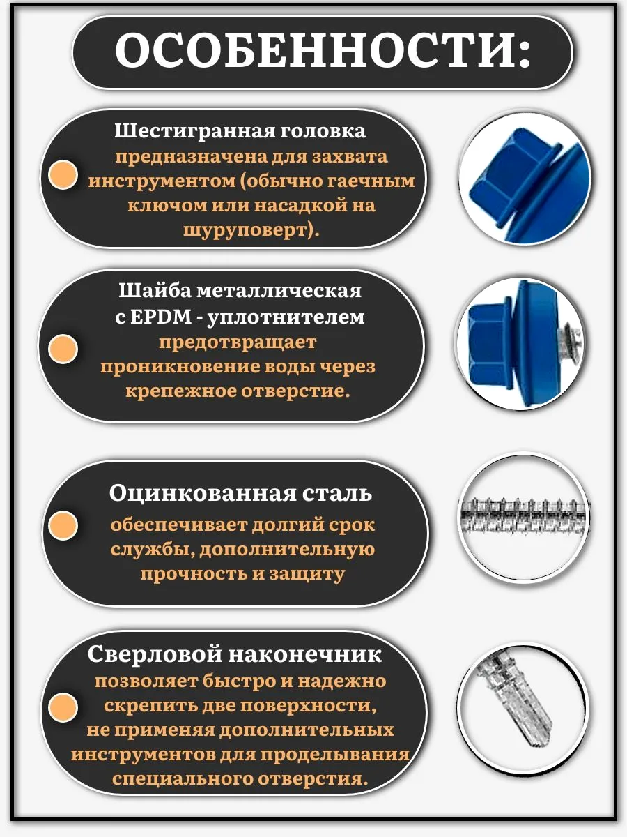 Саморез кровельный, 4,8х29 сигнально-синий RAL5005 1000 шт