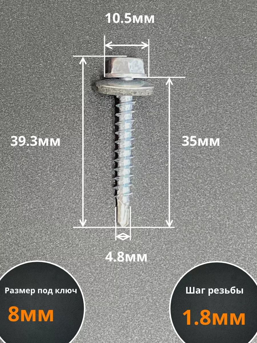 | Саморез кровельный 4,8х35 мм с шайбой (под сверло),ОЦ 1000шт. | B03004803536O07ф1000 | 1 шт. |