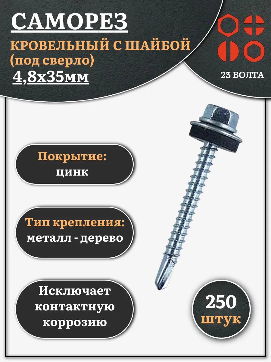 | Саморез кровельный 4,8х35 мм с шайбой (под сверло),ОЦ 250шт. | B03004803536O07ф250 | 1 шт. |
