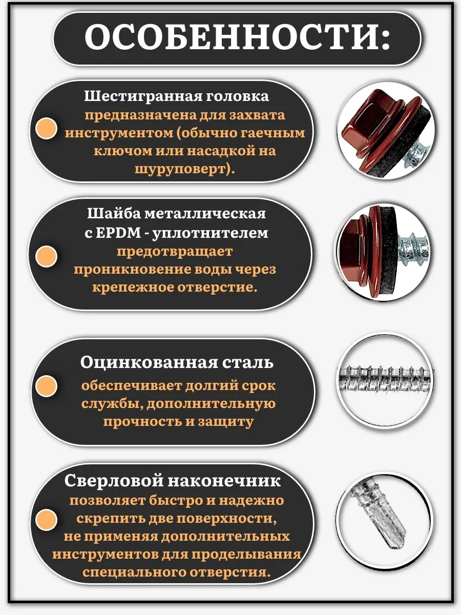 Саморез кровельный, 4,8х35 винно-красный RAL3005 500 шт