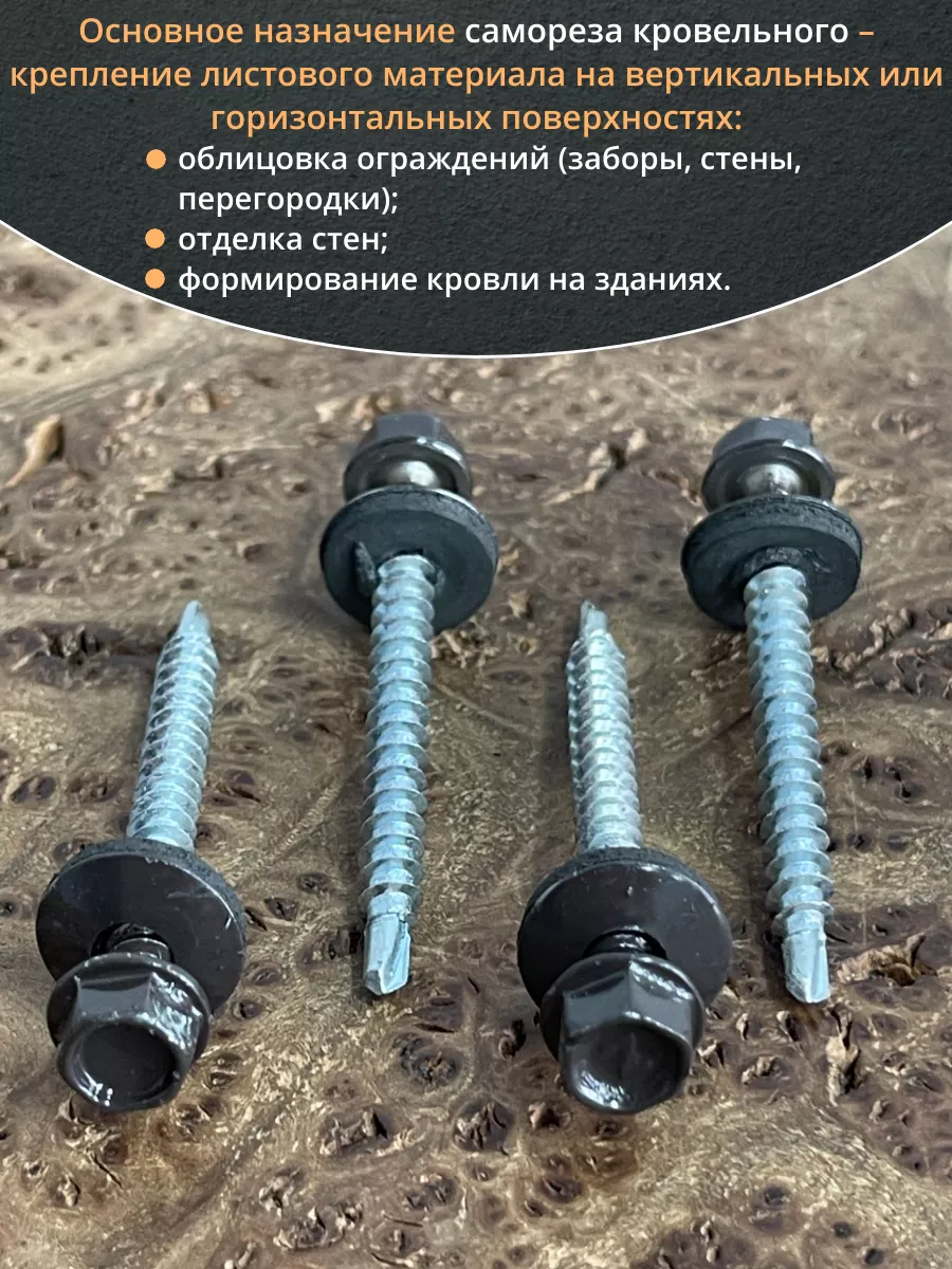 Саморез кровельный, 4,8х50/51 серо-коричневый RAL8019 50 шт