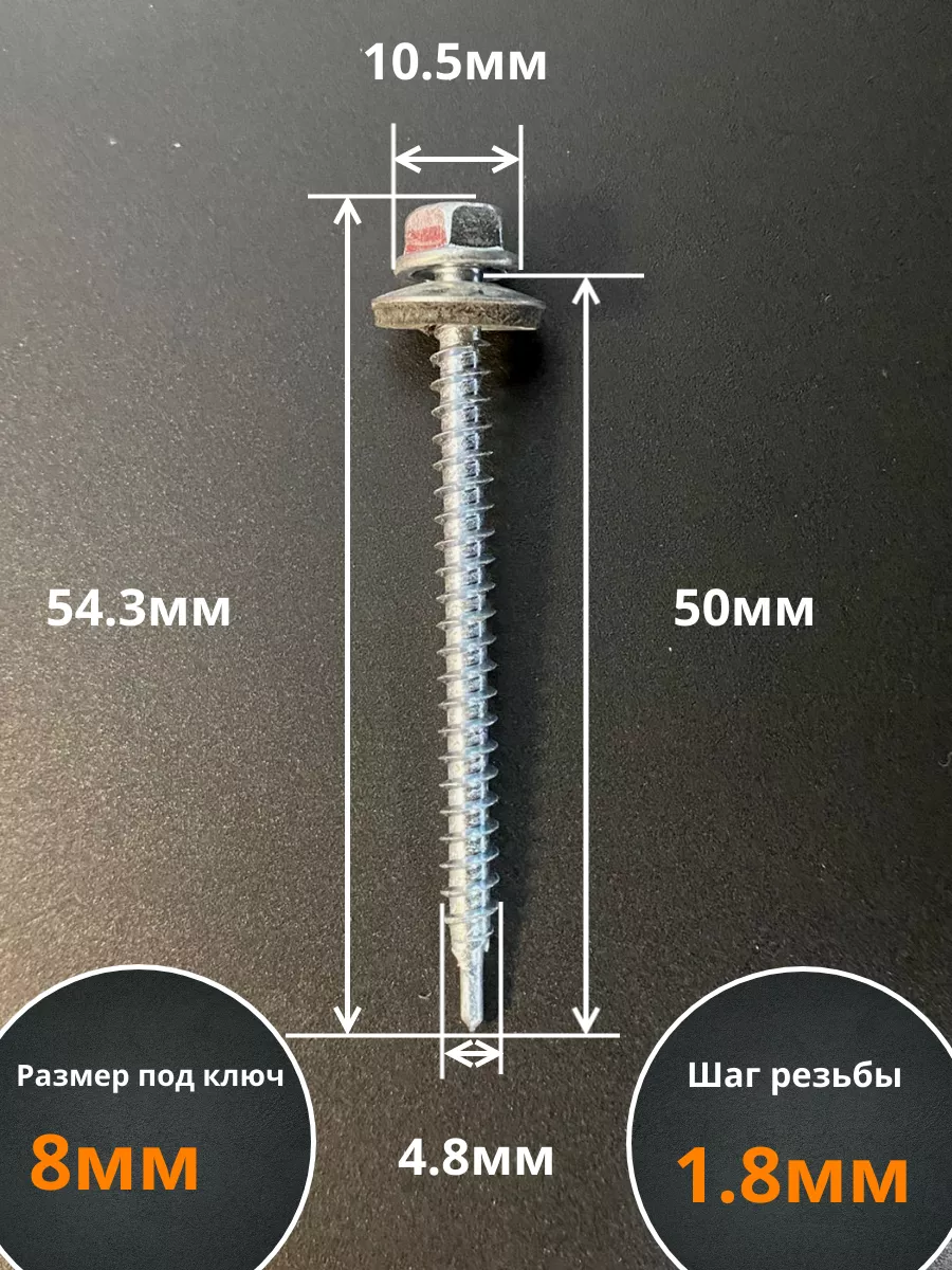 Саморез кровельный 4,8х50 мм с шайбой (под сверло),ОЦ 100шт.