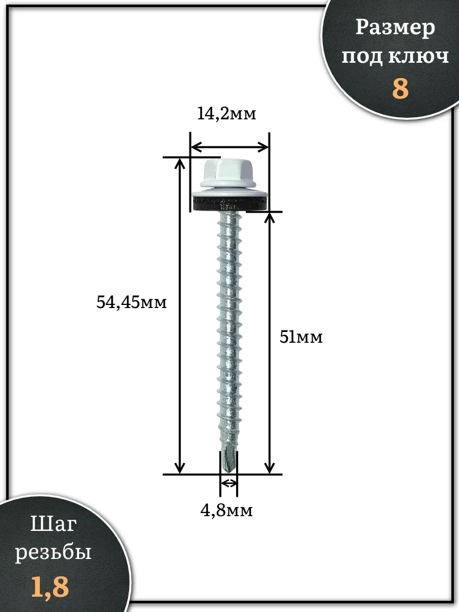 Саморез кровельный, 4,8х51 сигнально-белый RAL9003 250 шт