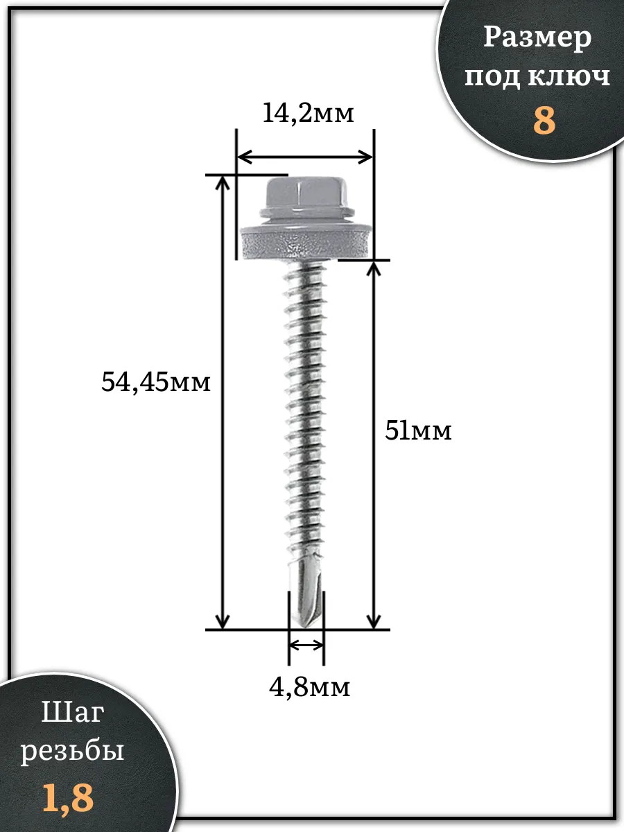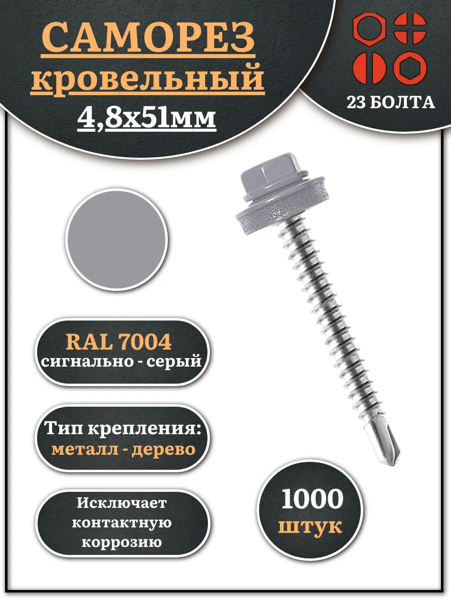 Саморез кровельный, 4,8х51 сигнально-серый RAL7004 1000 шт