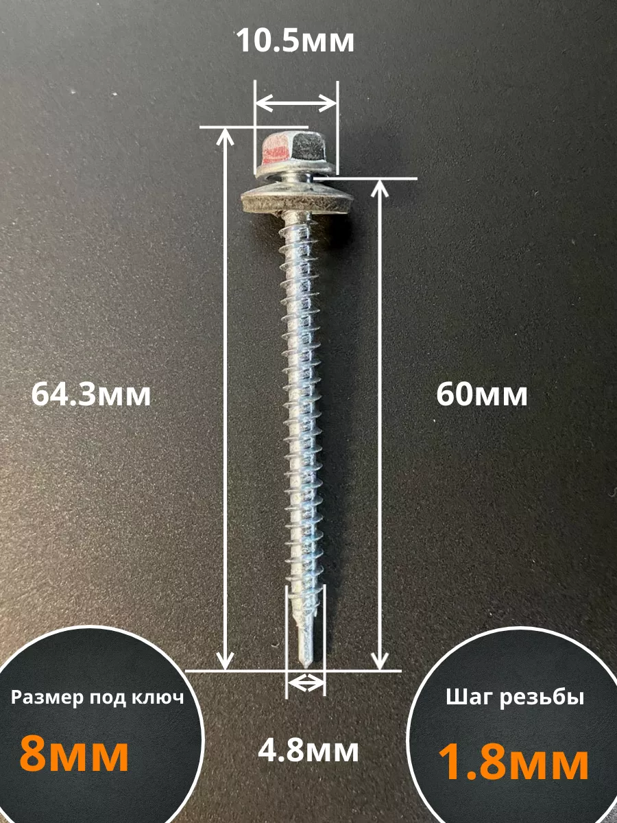 | Саморез кровельный 4,8х60 мм с шайбой (под сверло),ОЦ 50шт. | B03004806031R07ф50 | 1 шт. |