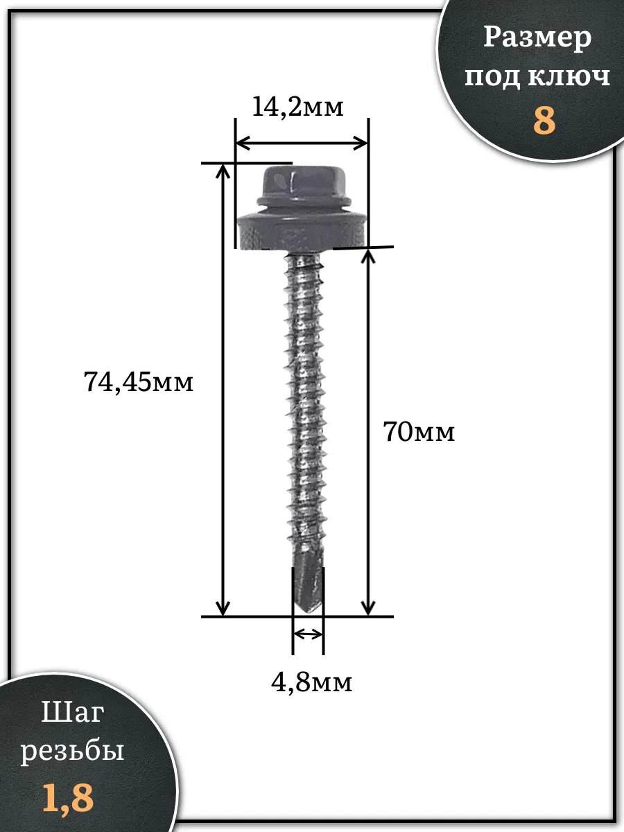 Саморез кровельный, 4,8х70 графитовый серый RAL7024 250 шт