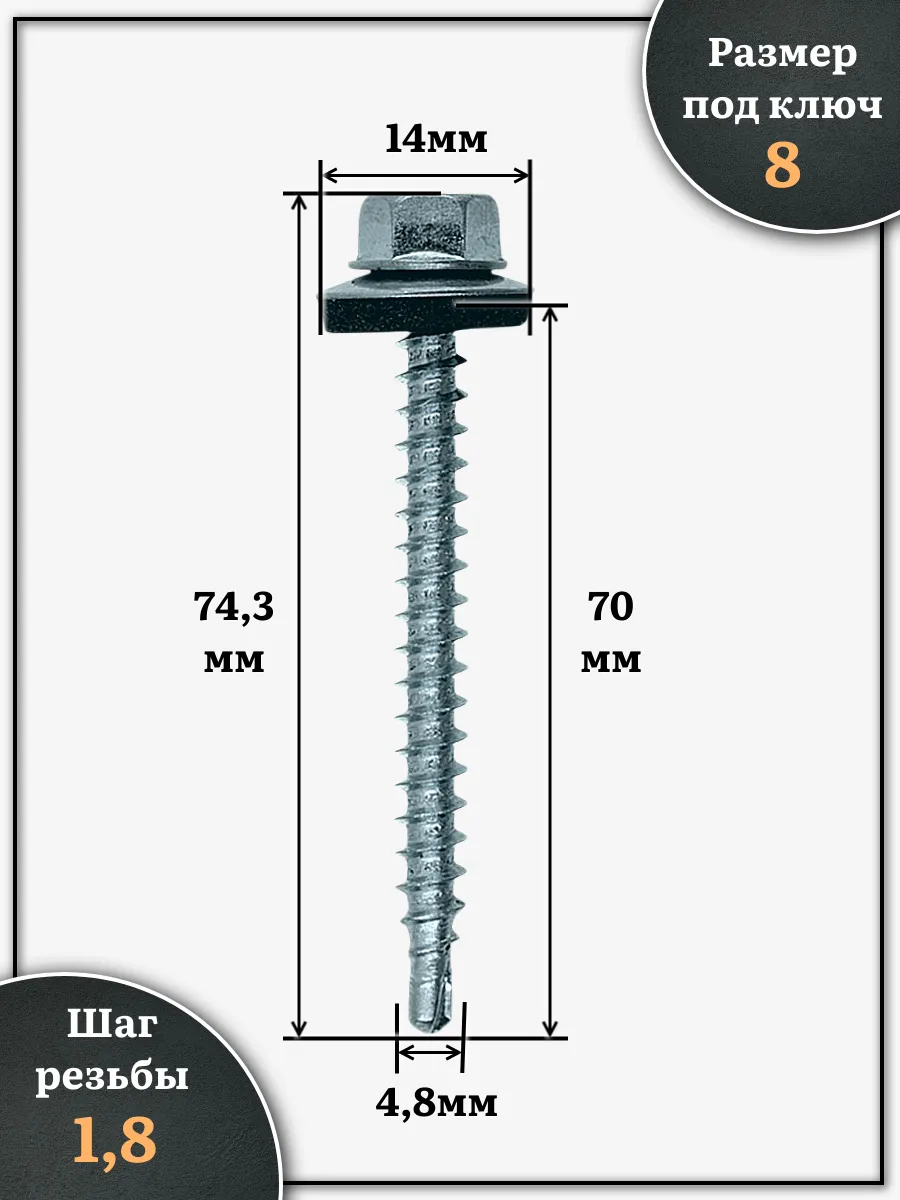 | Саморез кровельный 4,8х70 мм с шайбой (под сверло),ОЦ 100шт. | B03004807034007ф100 | 1 шт. |