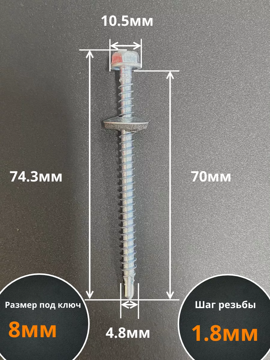 | Саморез кровельный 4,8х70 мм с шайбой (под сверло),ОЦ 250шт. | B03004807034007ф250 | 1 шт. |