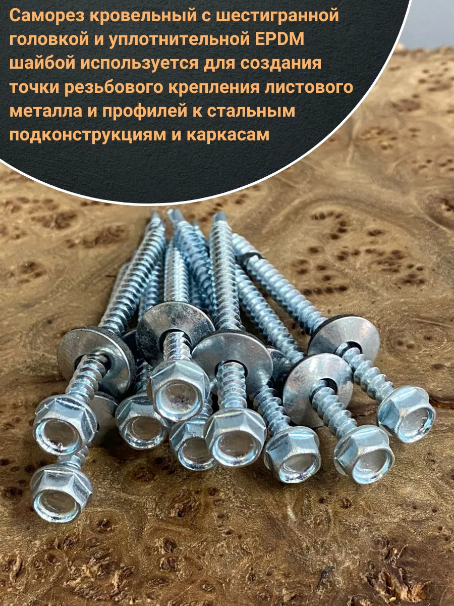 Саморез кровельный 4,8х76 мм с шайбой (под сверло),ОЦ 50шт.