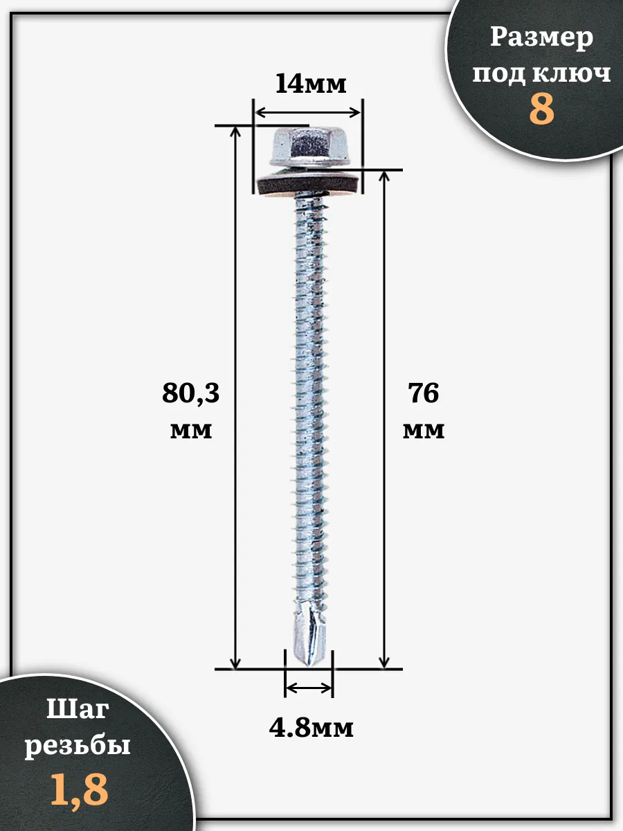 | Саморез кровельный 4,8х76 мм с шайбой (под сверло),ОЦ 100шт. | B03004807634007ф100 | 1 шт. |