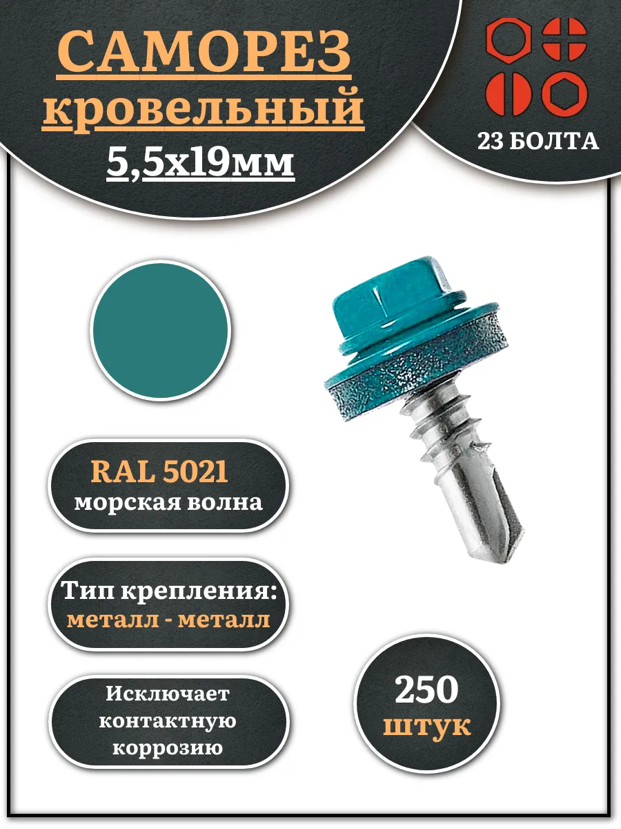 Саморез кровельный, 5,5х19 морская волна RAL5021 250 шт