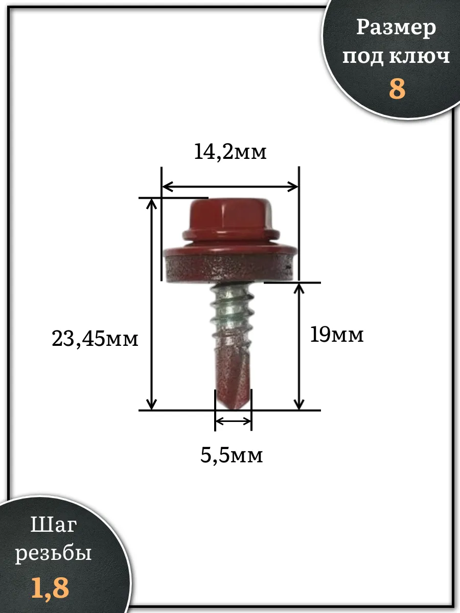 Саморез кровельный, 5,5х19 винно-красный RAL3005 250 шт