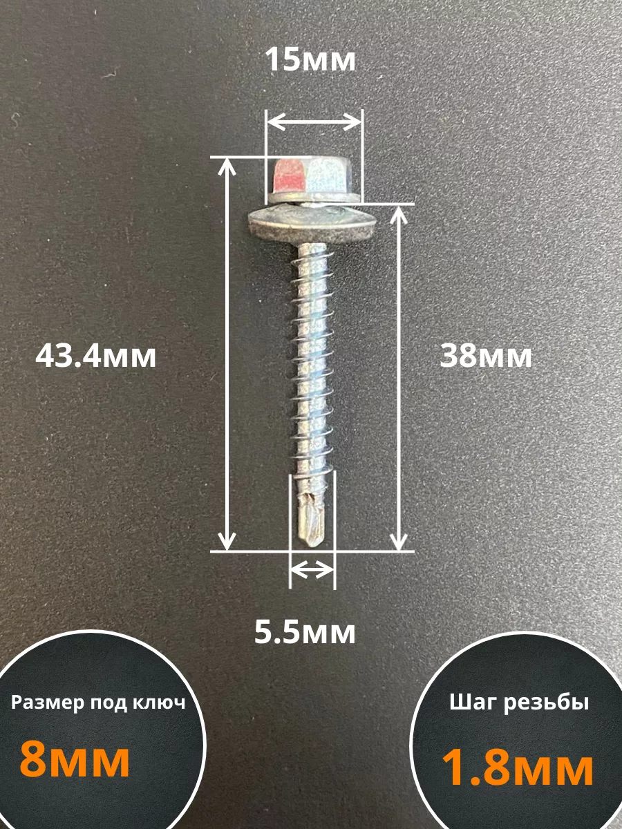 Саморез кровельный 5.5х38 мм с шайбой (под сверло),ОЦ 100шт.