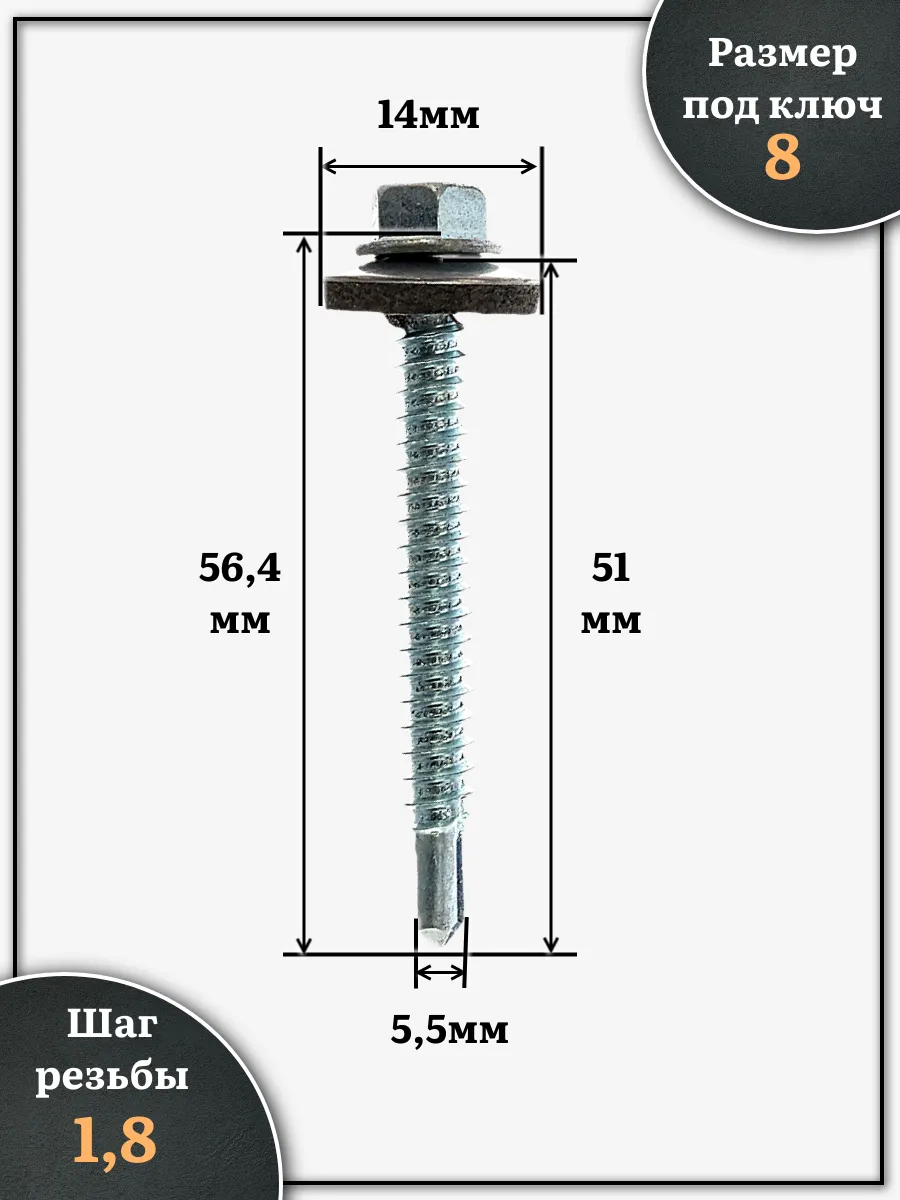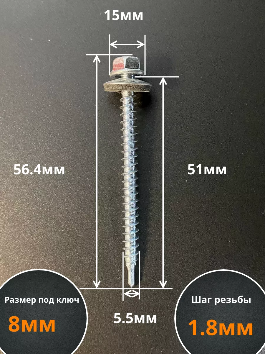 Саморез кровельный 5.5х51 мм с шайбой (под сверло),ОЦ