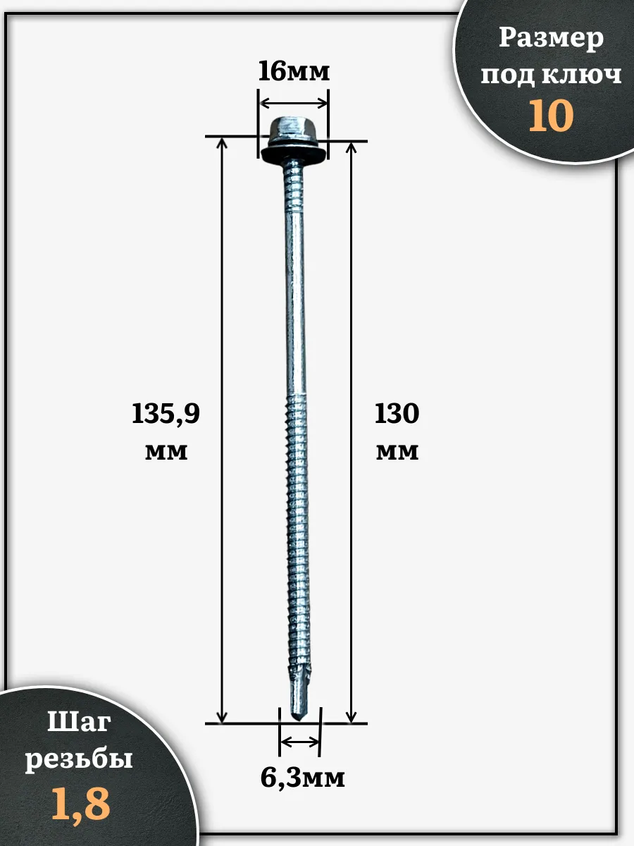 | Саморез кровельный 6,3х130 мм с шайбой (под сверло),ОЦ 500шт | B03006313036007ф500 | 1 шт. |