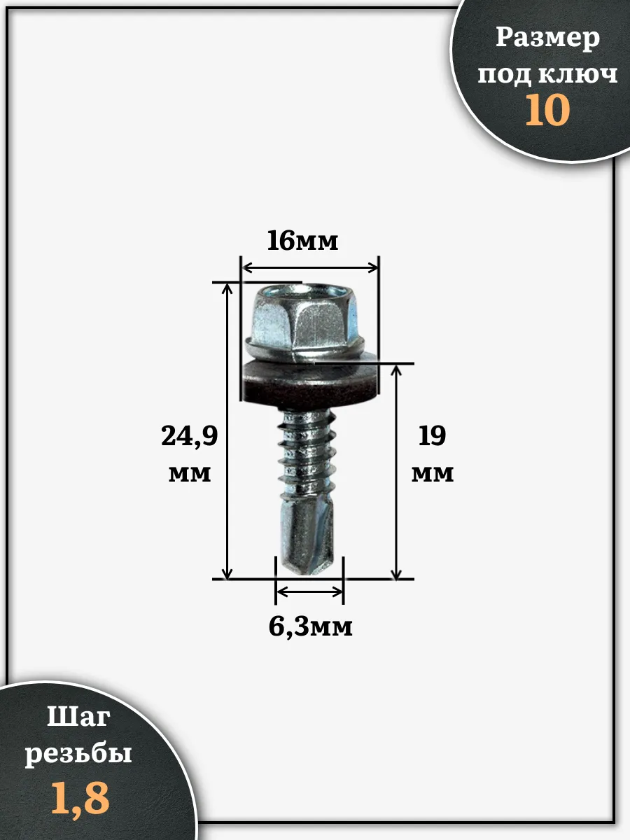 | Саморез кровельный 6,3х19 мм с шайбой (под сверло),ОЦ 500шт. | B03006301934307ф500 | 1 шт. |