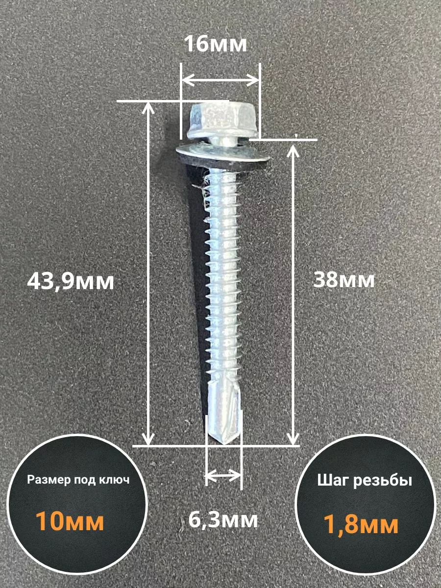 | Саморез кровельный 6,3х38 мм с шайбой (под сверло),ОЦ 1000шт. | B03006303833H07ф1000 | 1 шт. |