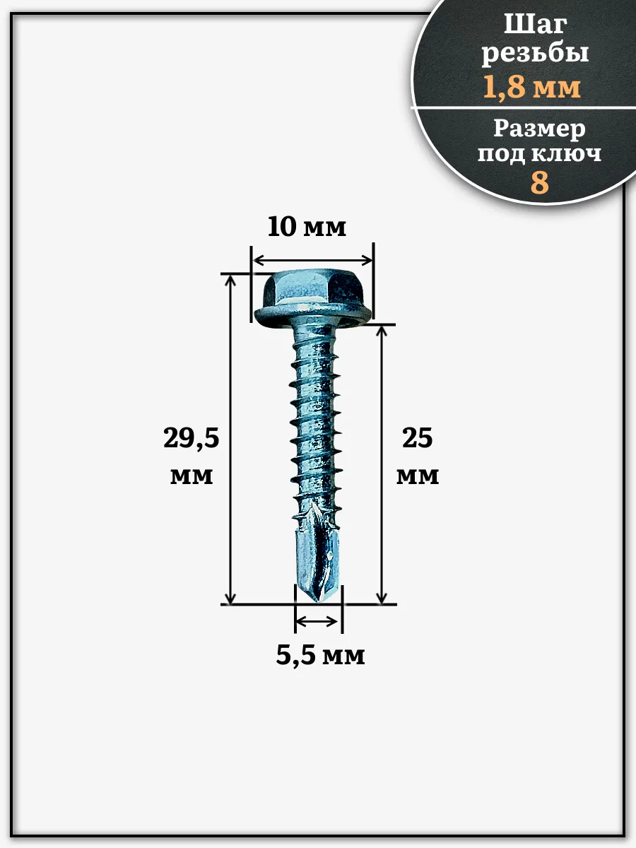 Саморез кровельный без шайбы, 5,5х25 ОЦ сверло РТ-3, 500 шт.