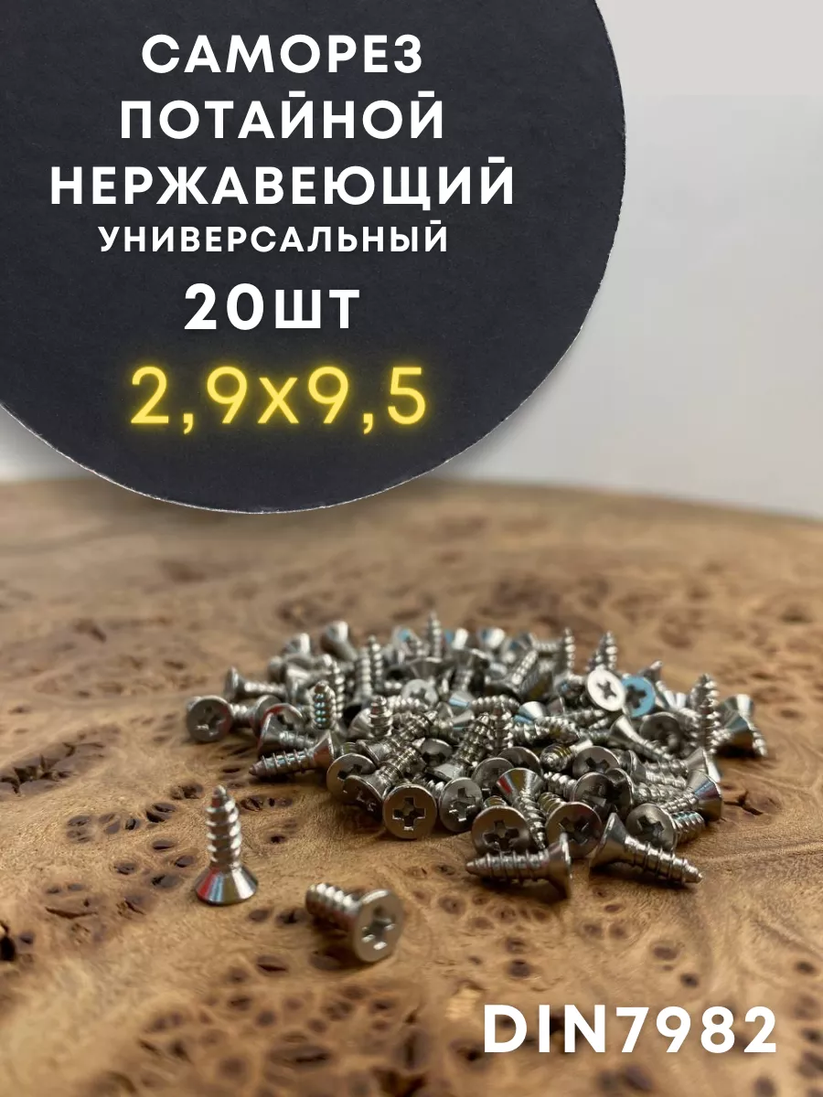 Саморез потай нержавеющий РН DIN7982 А2, 20 шт