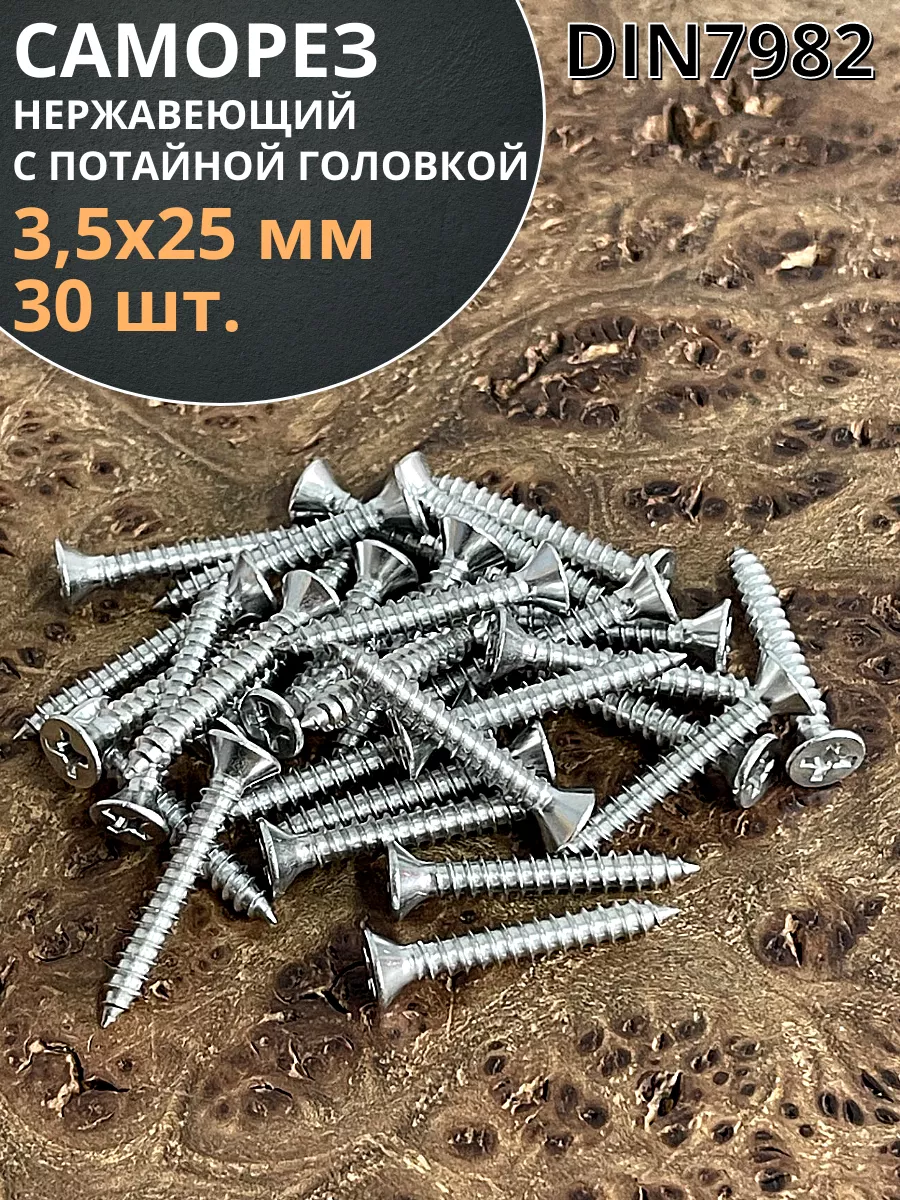 Саморез потайной нержавеющий 3,5х25 РН DIN7982, 30 шт