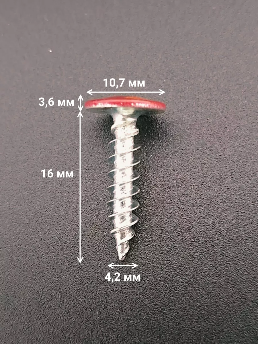 Саморез с прессшайбой 4,2х16 острый RAL3005 (красный), 50 шт.