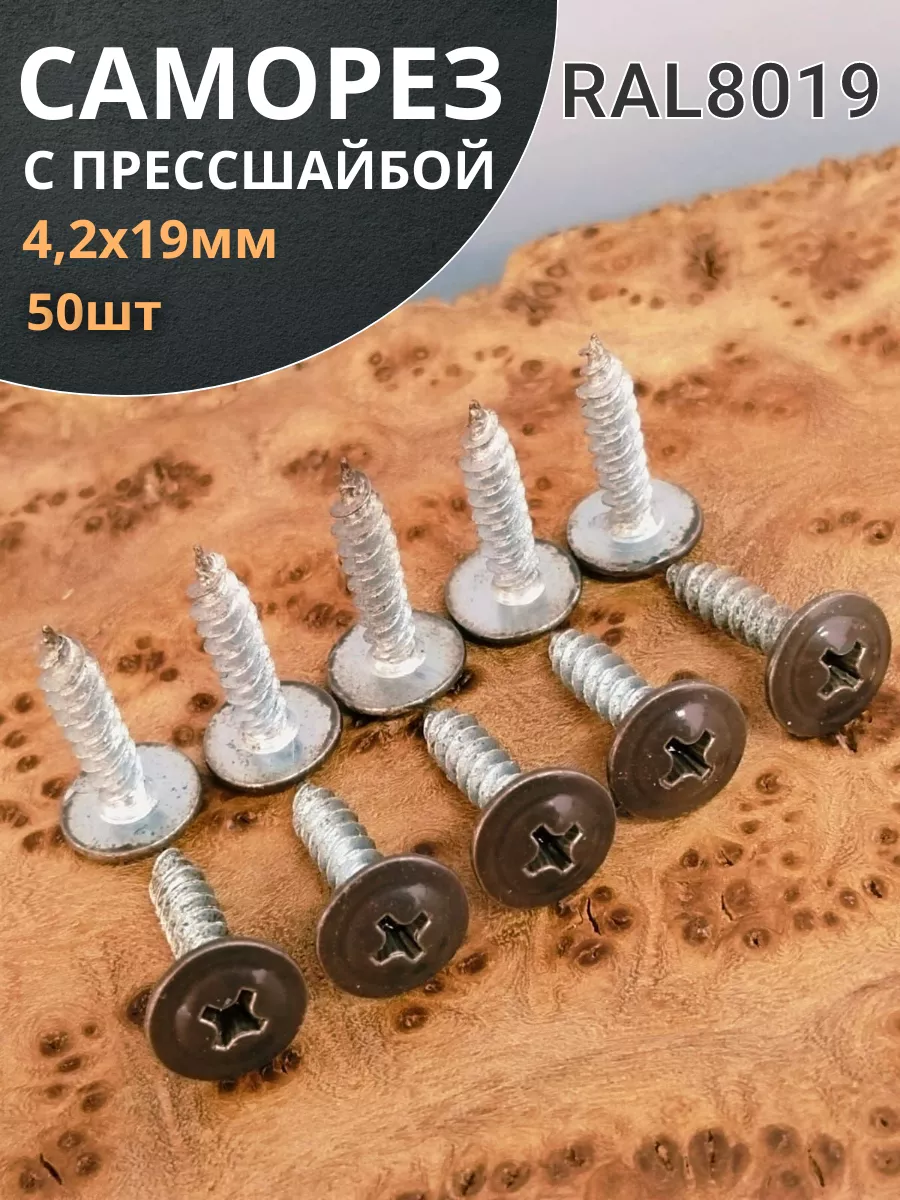 Саморез с прессшайбой 4,2х19 острый RAL8019 (серо-коричн), 50 шт.