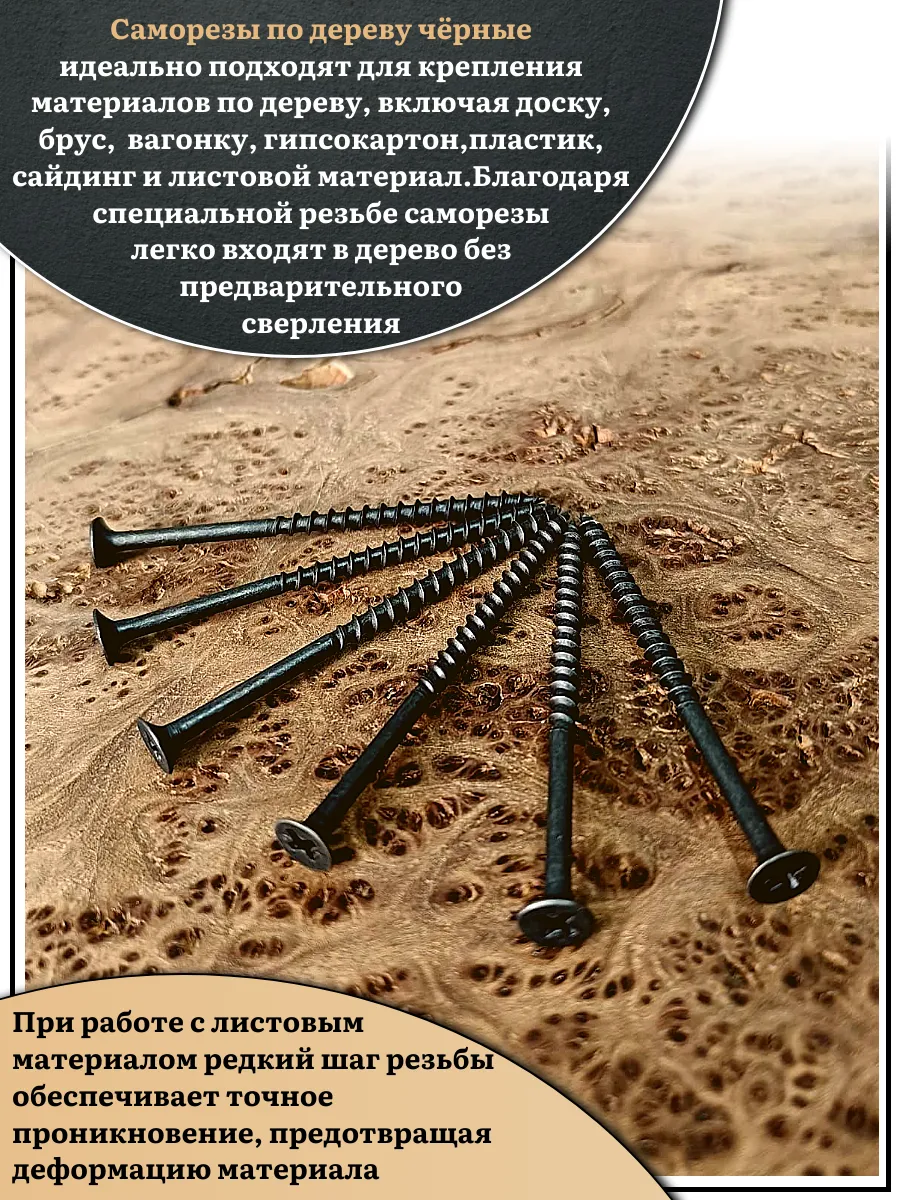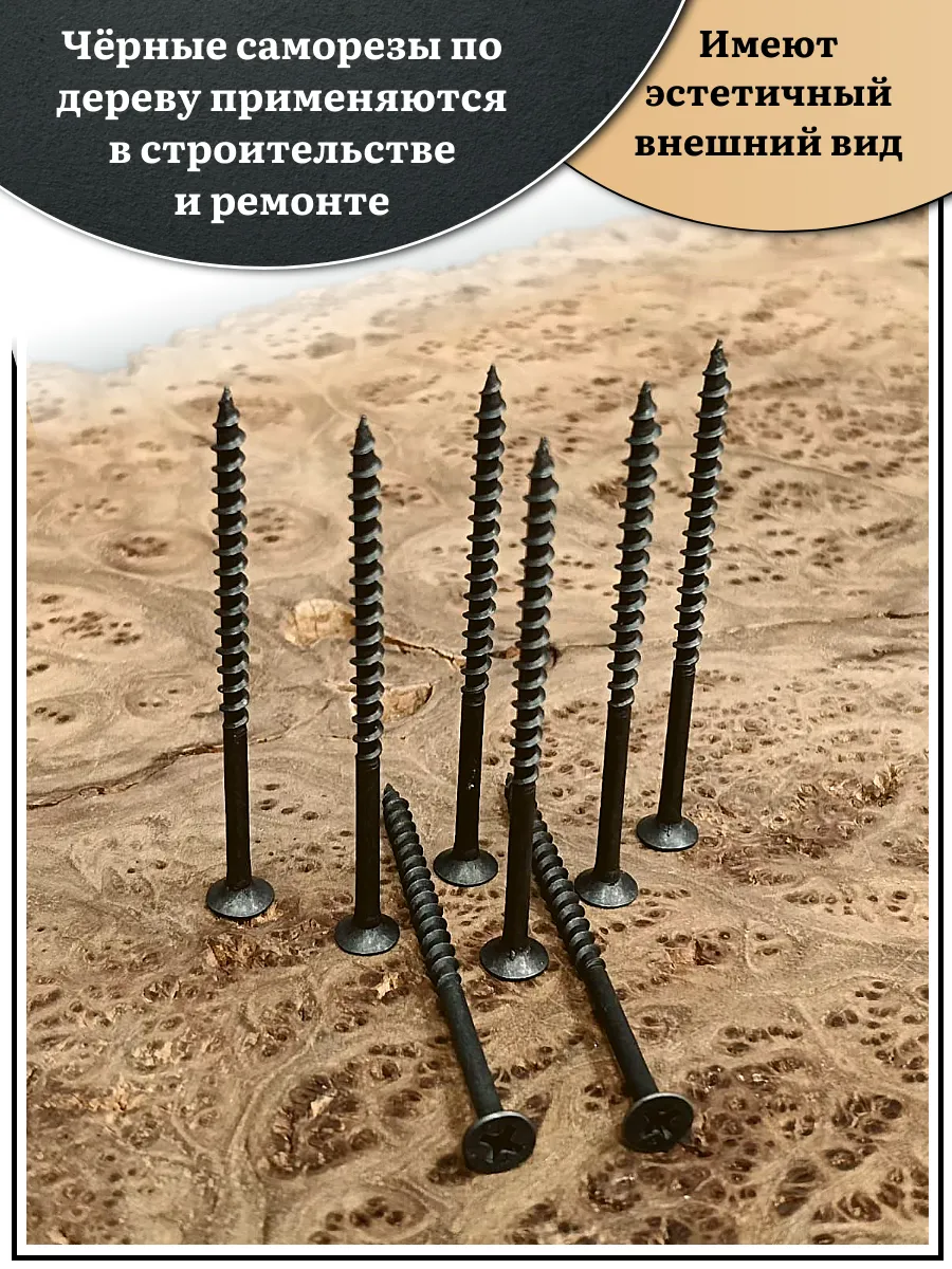 Саморез шуруп по дереву 4,2х75(76) крупная резьба, чёрный 50 шт.
