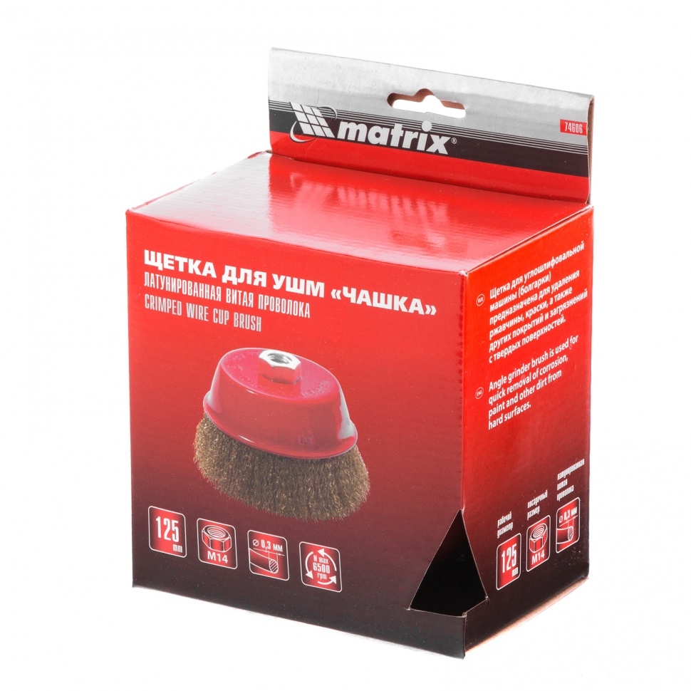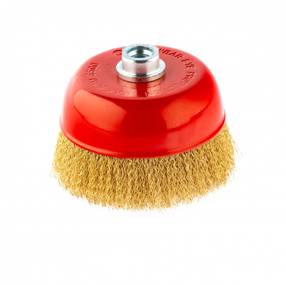 Щетка для УШМ "чашка", со шпилькой, латунир.вит.проволока 125 мм М14 Matrix