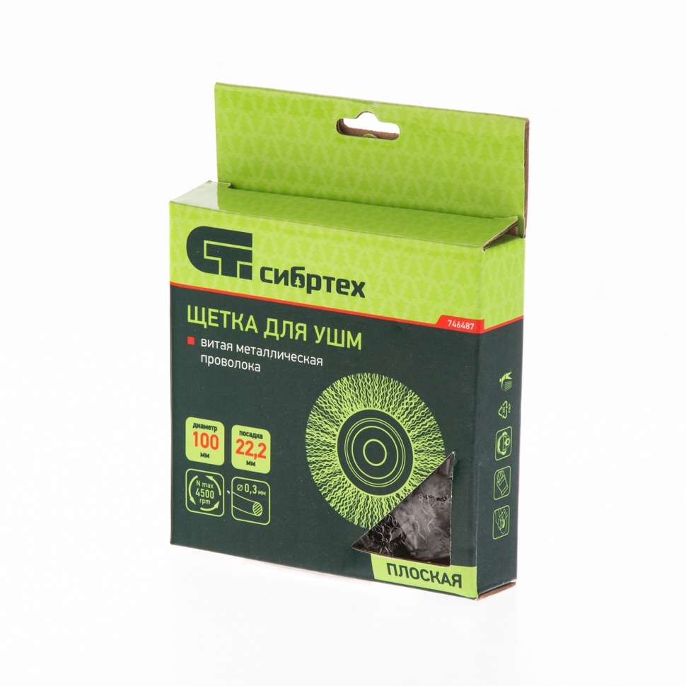 Щетка для УШМ плоская, вит.проволока, посадка 22,2мм, 100 мм М14 Сибртех