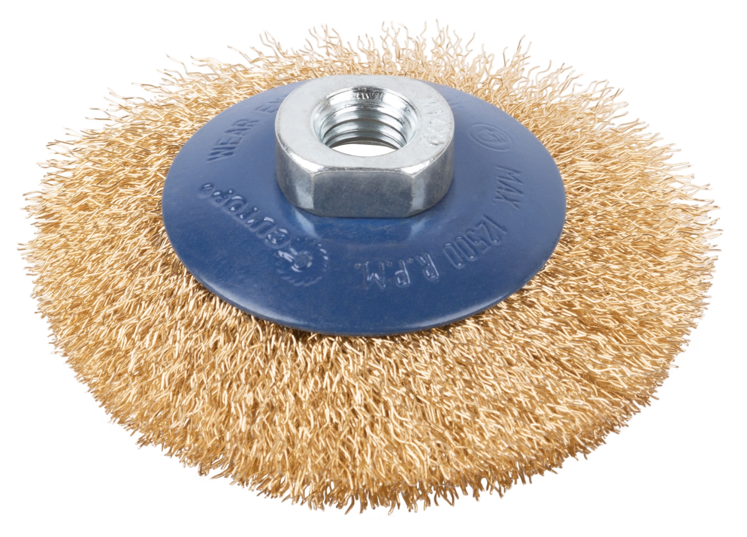 Корщетка-колесо, со штифтом, стальн.латунир.волнист.проволока 50 мм