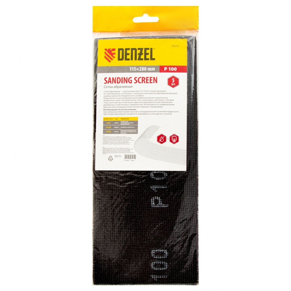 Сетка абразивная, 115 х 280 мм, 5 шт. Р 100 Denzel