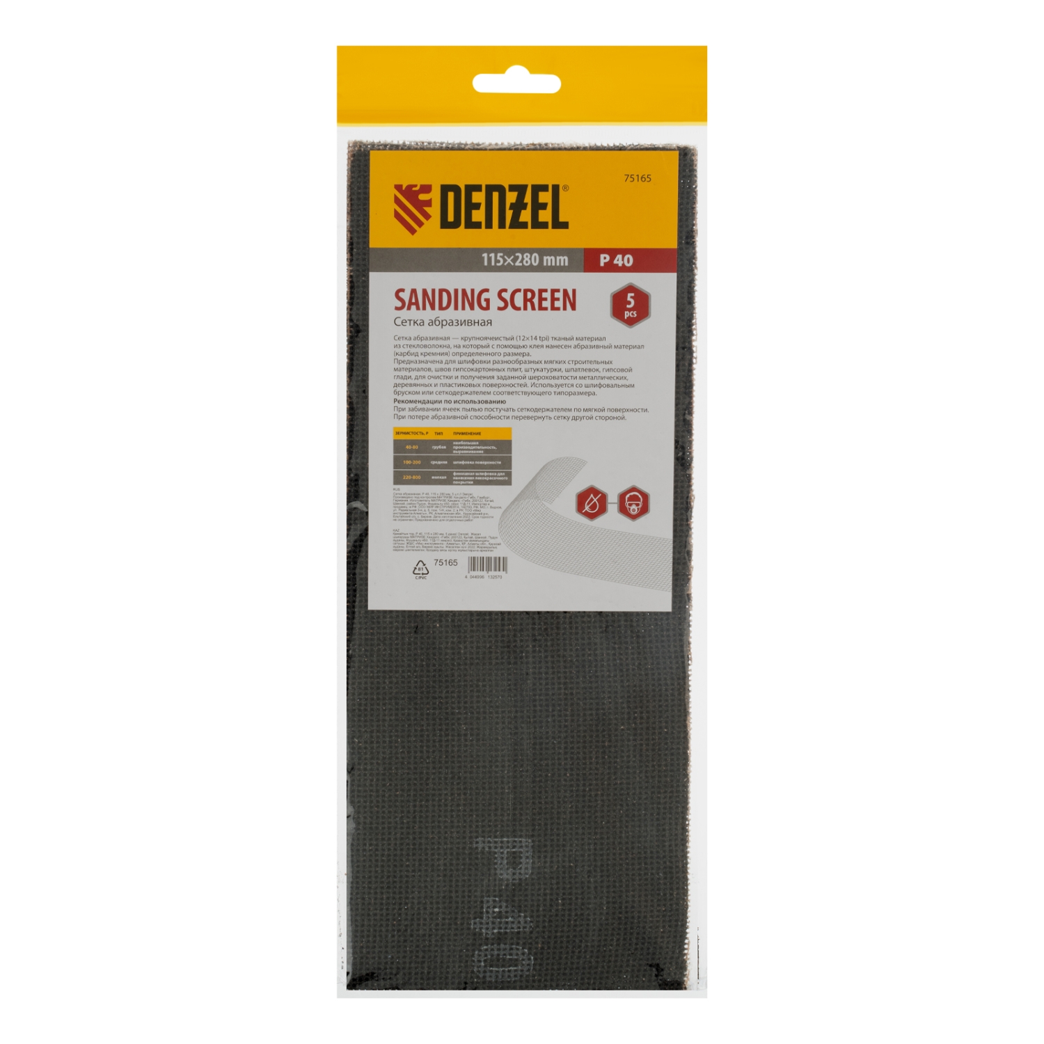 Сетка абразивная, 115 х 280 мм, 5 шт. Р 40 Denzel