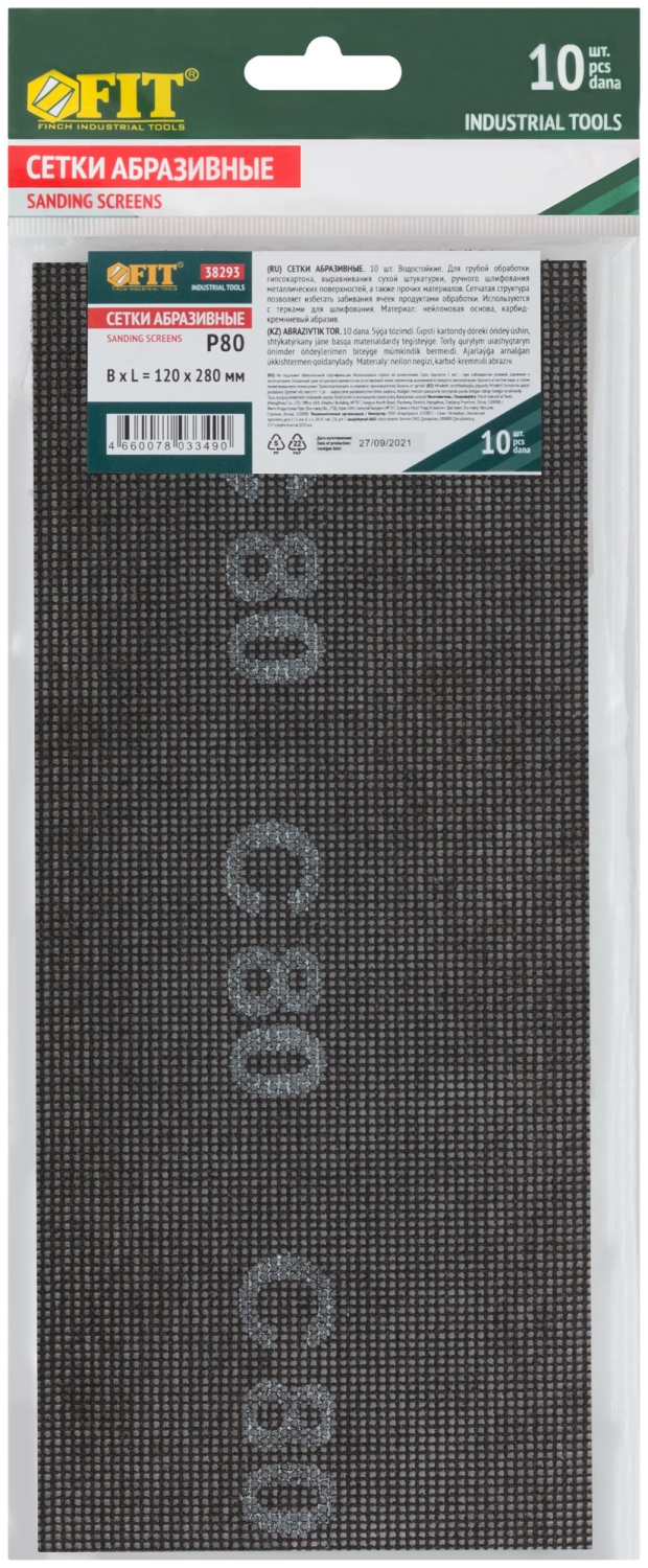 Сетки шлифовальные, нейлоновая основа, 120 х 280 мм, 10 шт. Р 80