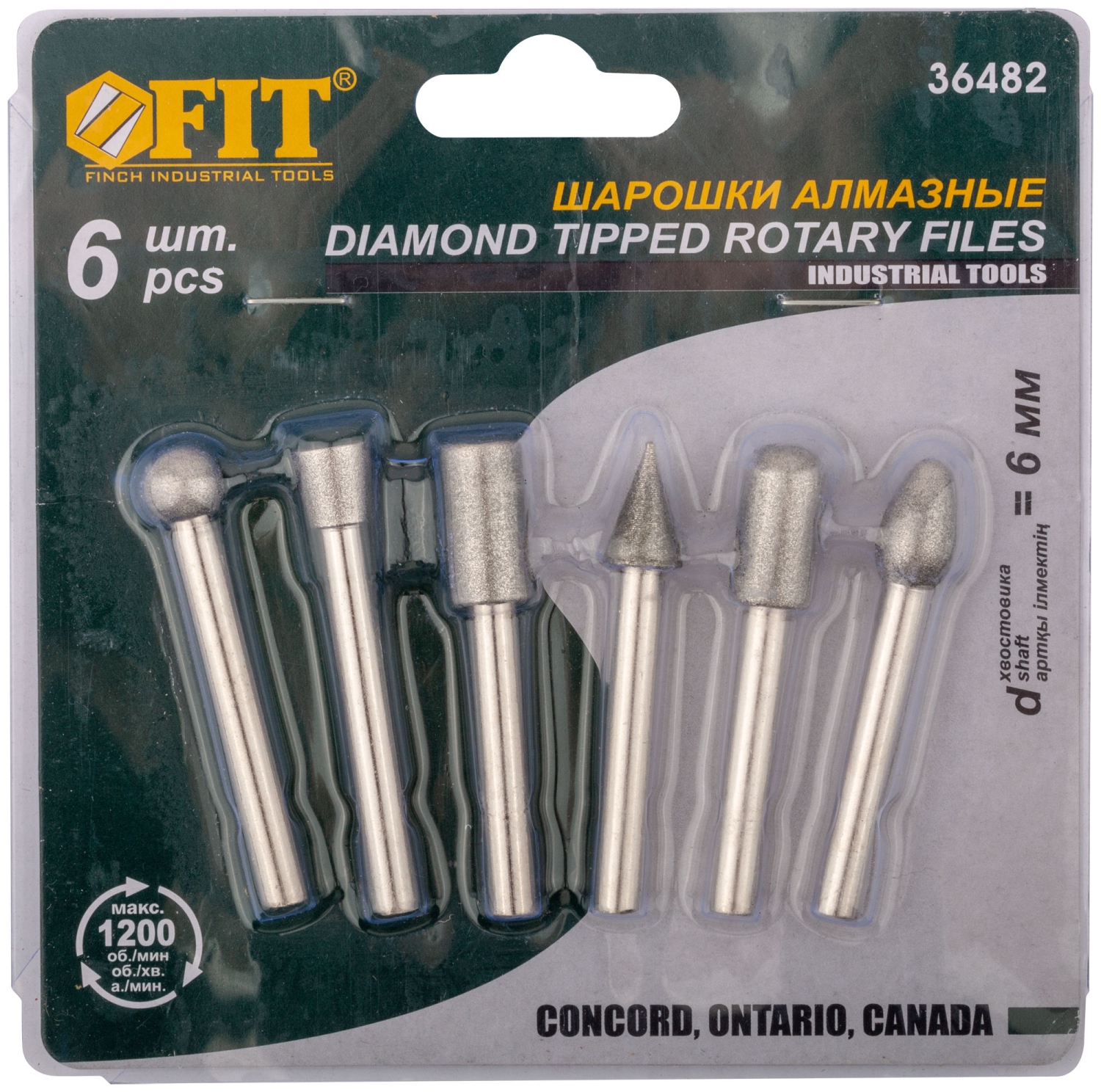 Шарошки усилен.сталь с алмаз.напылен., штифт диам. 6 мм, 6шт.
