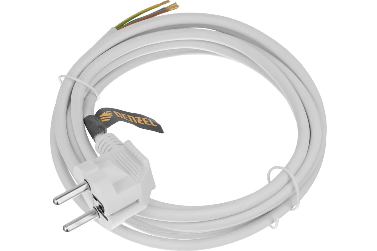 Шнур сетевой Energy Series ПВС 3x1 мм с неразборной вилкой белый 3 м Denzel