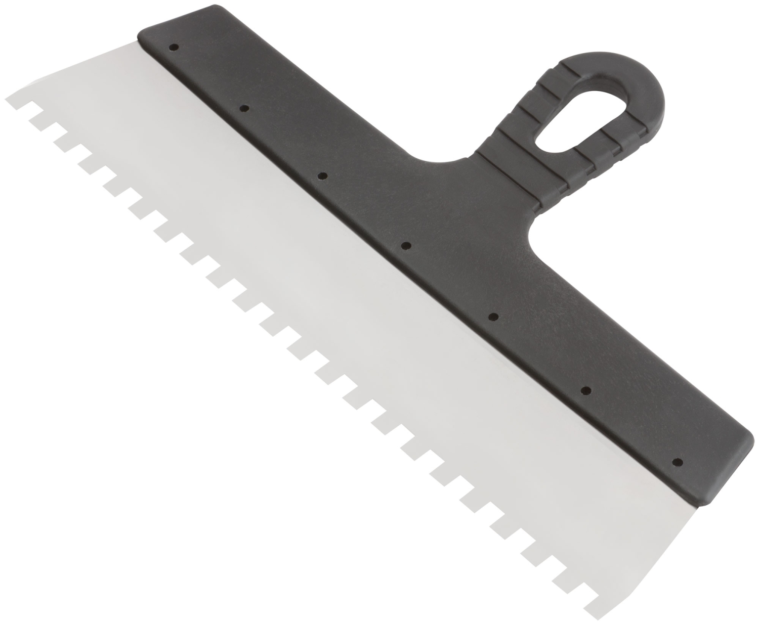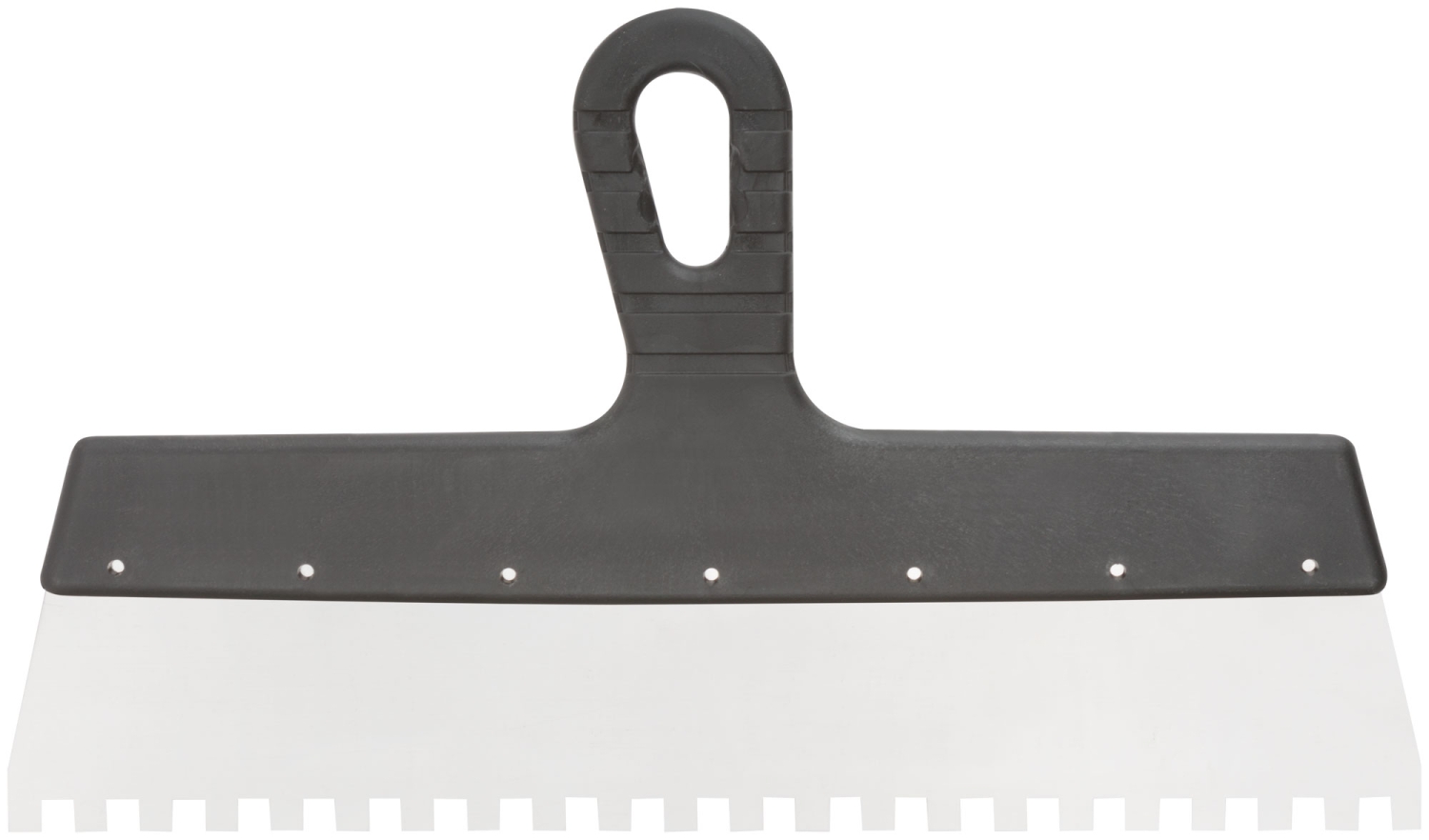 Зубчатый. Для работы на поверхностях большой площади. Материал: нержавеющая сталь, пластиковая ручка.