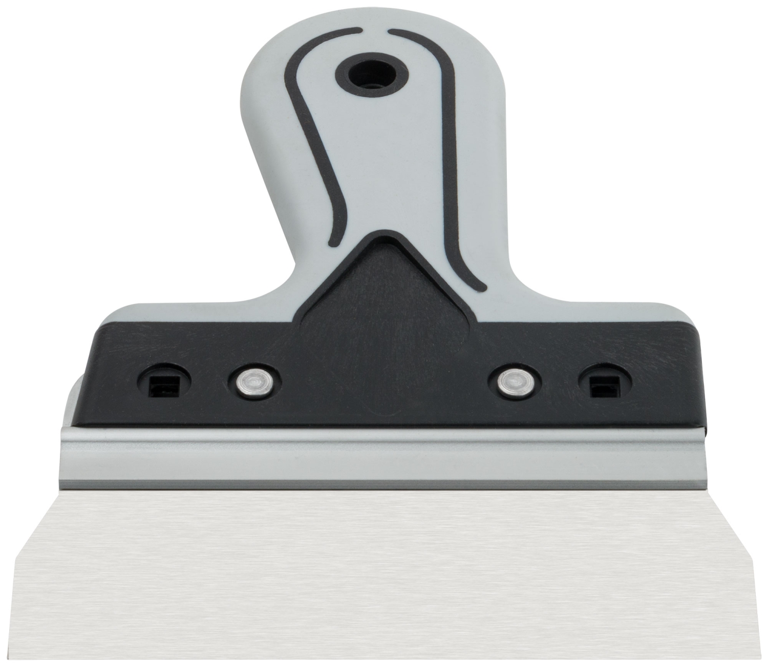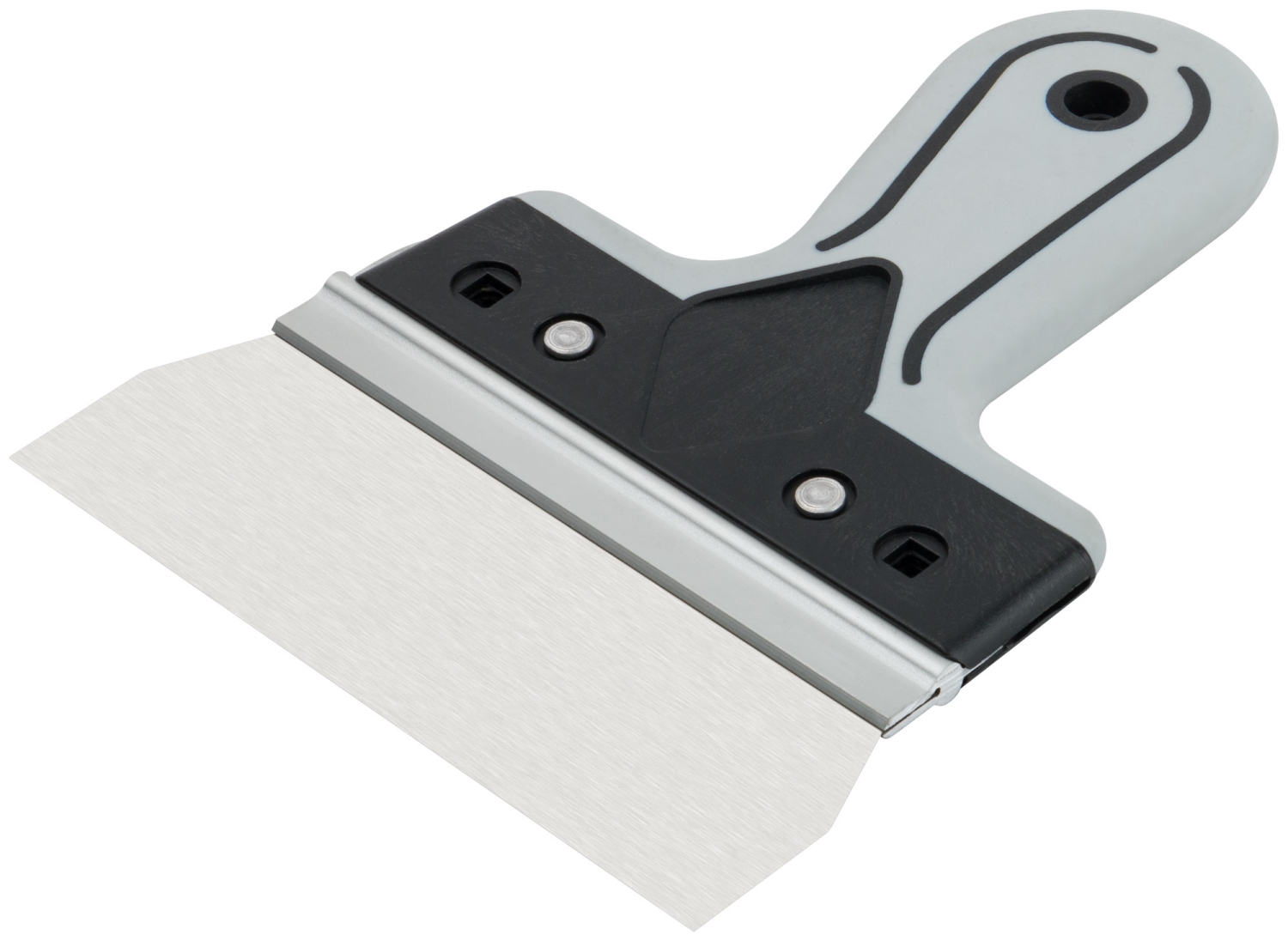 Профи. Для работы на поверхностях большой площади. Материал: лезвие из нержавеющей стали, алюминиевое ребро жесткости, пластиковая прорезиненная ручка.