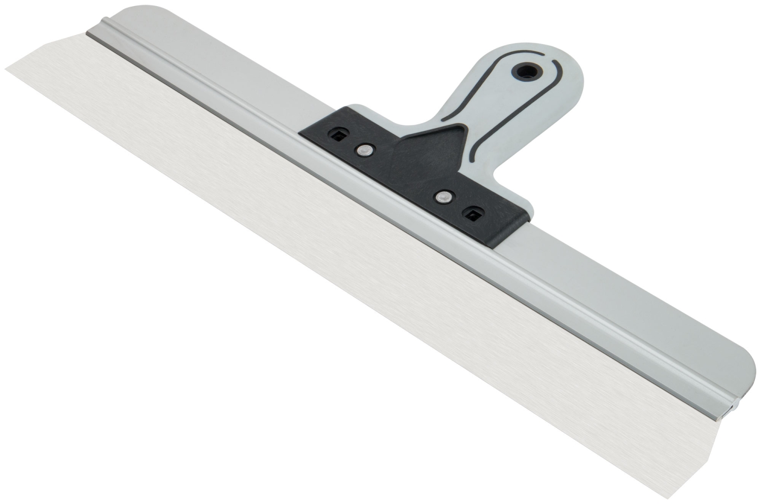 Профи. Для работы на поверхностях большой площади. Материал: лезвие из нержавеющей стали, алюминиевое ребро жесткости, пластиковая прорезиненная ручка.