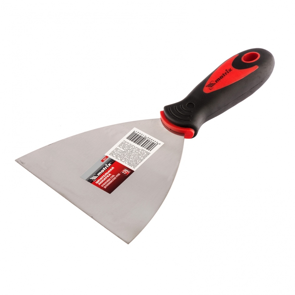 Шпательная лопатка из нержавеющей стали Matrix 85512 шириной 120 мм, с двухкомпонентной рукояткой, предназначена для нанесения разравнивания и сглаживания строительных смесей, шпаклевания швов, заполнения трещин, удаления старых обоев. За счет компактных размеров инструмент подходит для корректировки мелких трещин и неровностей.