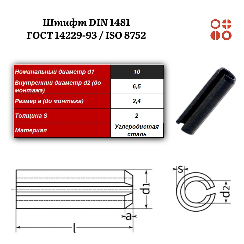 Штифт пружинный DIN 1481 10х22 / ГОСТ 14229-93 / ISO 8752, 500 шт.