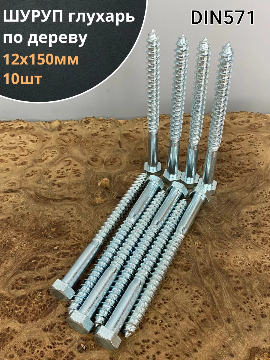 Шуруп глухарь по дереву 12х150, 10 шт.